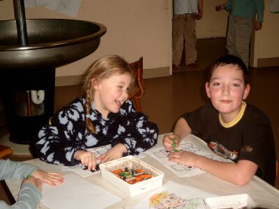 | Kevin en Sofie gingen in de knutselhoek een mooie slinger maken. |