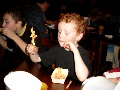 Die stokje waren ook makelijk om frietjes te rijgen. Veel lekkerder toch? |