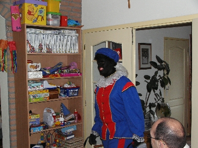 Zondags s'morgen kwam daar een piet bij Tonny en Peter aan de deur. |
