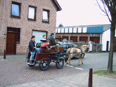 Op 2de paasdag waren we voor het eerst de stad in gedaan met paard en wagen. |