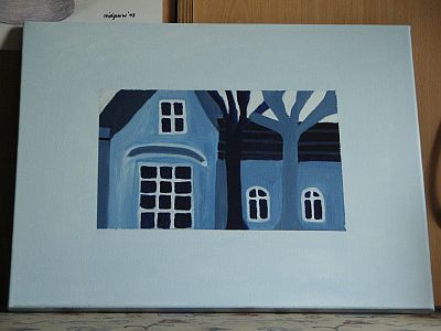 Huis met boom op acrylverf.
