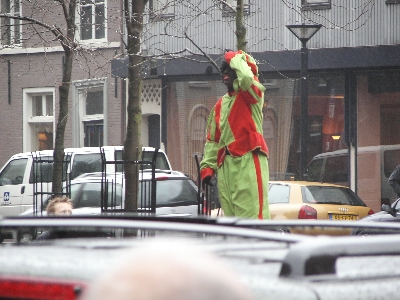 | Daar zijn allemaal pieten die druk bezig zijn met kunsten te vertonen. Volgens mijn staat daar een jongetje te kijken die later ook piet wil worden. |