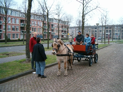Op 2de paasdag waren we voor het eerst de stad in gedaan met paard en wagen. |